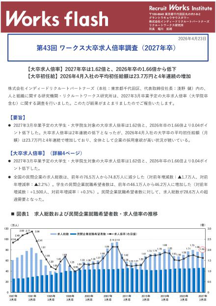 「全国就業実態パネル調査」「大卒求人倍率調査」といった大規模調査を毎年実施・結果を公表し、労働市場や働き方の実態を常に測定・把握しています。