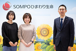 SOMPOひまわり生命 人財開発部 企画グループ 課長(グループ長)坪井 正登氏/課長代理 落合 加奈氏/課長代理 山田 友美子氏