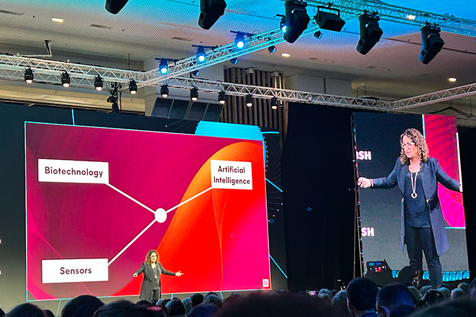 Future Today InstituteのCEOであるAmy Webb氏は、「未来の光景:2030年以降の仕事の姿」というテーマで講演し、企業が未来のビジョンを持つ重要性を強調した。今後5~10年間で普及すると思われる革新的な技術について解説し、特にAI、バイオテクノロジー、高度センサー技術が次のイノベーションを引き起こすと述べた。