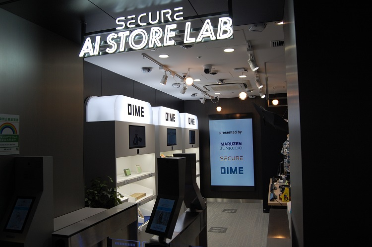 セキュアの無人型店舗「SECURE AI STORE LAB」は、同社が入居する新宿の高層ビルの地下1階にある5坪の店舗で、自社で運営し、出展した企業が提供する商品を販売する形をとる。出入り口のセキュリティゲートに加え、店内の天井・棚にはカメラや商品管理用のAIカメラや重量センサーなどを50基以上設置し、棚ごとに複数のデジタルサイネージも備えている。同社はここで無人型店舗の運営や業務効率化のノウハウを蓄積して、小売業へのサービス提供へとつなげる考えである。