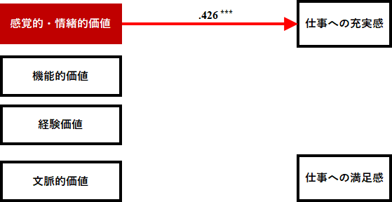 まず、習得段階である第1段階から、上級者とされる第4段階までの段階では、「感覚的・情緒的価値」の機会があるほど、仕事への充実感が高まっていた。すなわち、その分野の第一人者になるまでの人は職場で情緒的な側面を共有する機会があるほど、仕事への充実感が高まっていた。