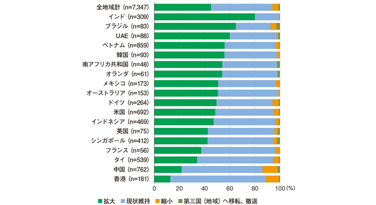 今後1〜2年の事業展開の方向性(主要国・地域別)