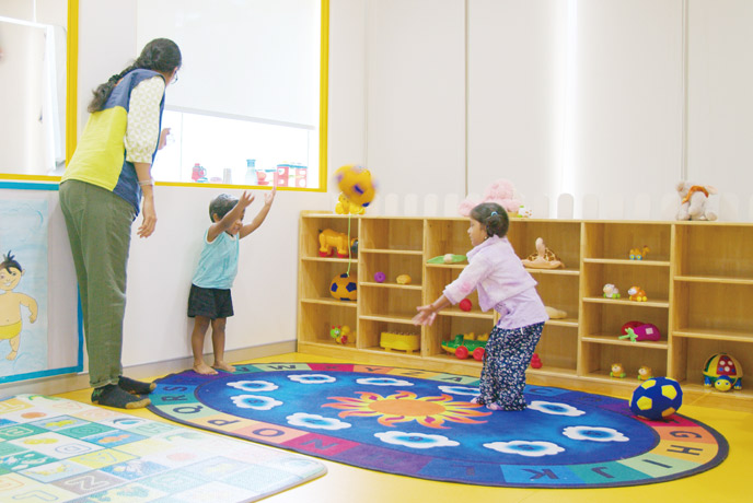 子どものいる社員は、ベビーデイケア施設にあるモニターをウォッチしながら仕事ができる。